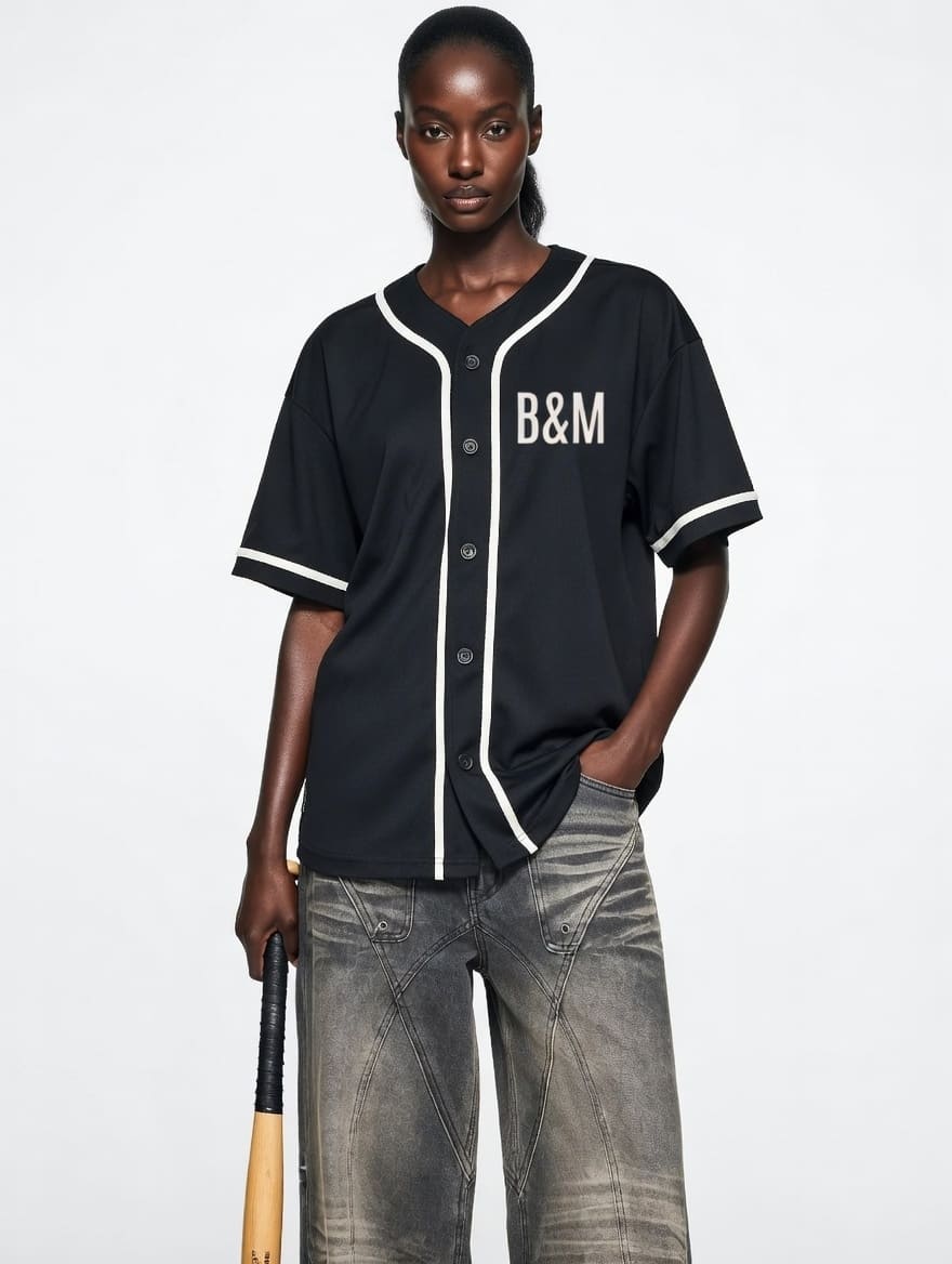Unisex loose bold and modern (B&M)-fit button-up shirt in a 58.5% cotton, 41.5% polyester blend (8.0 oz/yd²) with moderate thickness. Features contrast piping, short sleeves, drop shoulders, and a V-neck, perfect for casual, street, or office looks—ideal for spring, summer, and autumn. Includes a 40x52cm print area. Note: Minor batch variations in fabric/dye and button positioning may occur; avoid using buttons as a design reference. Machine wash cold (30°C), tumble dry low. Sizes S-2XL; see chart for details.